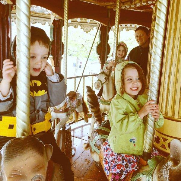 Carousel fun. Maren’s on a cat. Weird.